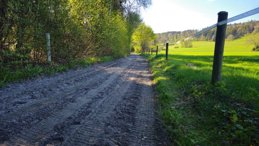 Der Allwetterplatz 40x30m (Halbrund) im Innern der östlichen Schlaufe ist so ausgebaut, dass hier bei jeder Witterung gute Arbeitsbedingungen für Ihr Pferd herrschen. Zudem stehen einige Geländehindernisse und Baumstämme zur Verfügung, die frei genutzt werden können.